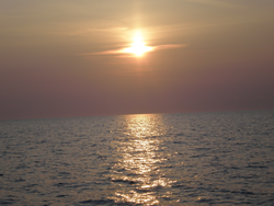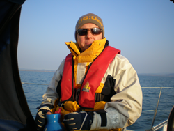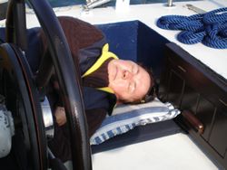 As day light broke, Ann prepared a healthy breakfast (Full English with extras). As the day developed the coast line remained misty but offshore the sun gain strength - suntan lotion a must. The early start and the warm weather took its toll on the crew!