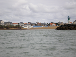 Wednesday 27th, the winds drop off to a westerly F5 and the sea state falls from rough to moderate - we are off! The thunder showers remain and the temperatures seem to remain around 16-18 Celsius, more like the English summer. We were heading for St-Gilles-Croix-de-Vie, a destination some 65 miles south. Lee, Trish, Georgia and Reece were holidaying at St-Jean-de-Mont only 8/10 mile from St Gilles. The journey was a good twelve hours and gave us our first experience of the westerly swells generated by such light winds, it was strange sliding down such large waves with a full set of canvas flying. As we pasted through areas of increased wind speed the sea seemed to react instantly. It makes one understand by people generally "hop" from port to port as apposed to longer trips as the concentration required to negotiate the swell and it's consequences is quite exhausting. The trip reminded us of familiar UK waters - with the wind chill, it was cold!