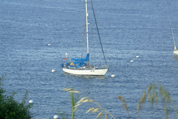 The town itself has contrast, obviously, in earlier years, a fishing port. Now, clearly a failing occupation with a number of "abandoned" travelers left to the weather on the beach. The area is very picturesque, with dramatic coast line, "almost white sand beaches". The local industry clearly now being "tourism" - too many English for us! We were taken by surprised by the number of "UK registered cars" along with the number of English registered vessels in Port Verban where we are.