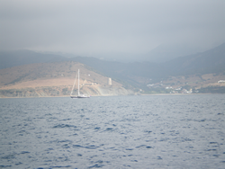 As we continued the Spanish coast became clearer through the mist, we could just make out the other vessels through the mist to the south, along with the occupants of the main shipping lanes - we were well north of them. Our coarse too us north west in the straits to pass north of Las Bajas, another section of shallows and according to the charts, ship wrecks. This put even more distance between the other boats and us, our route would be much shorter - time would tell on the final result.