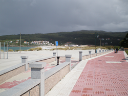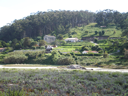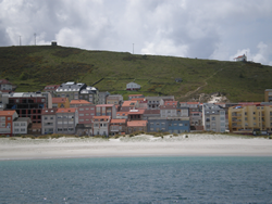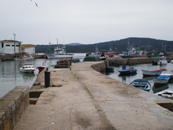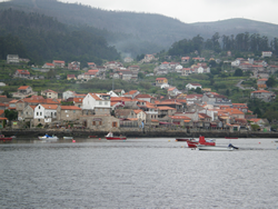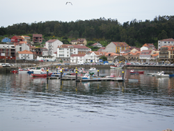 Lage (Laxe) is a typical small Galician fishing village expanding into a local holiday resort, the 14th century church of Santiago de Lage over looks the small busy harbour. The north harbour wall is occupied with transporting local wood out of the area.