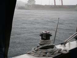 The weather is not good for the next couple of days, heavy rain forecast, we were amazed to see the news yesterday in the bar (as we sheltered from a rain shower) most of Spain and it's islands were suffering from heavy down pours and flooding - we, fortunately, had seen little rain. With a lazy day ahead we have breakfast on deck and are entertained by the local harbour authorities.