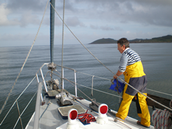 Our departure on Thursday was an original destination to Finisterre. The weather forecast was not exactly favourable (winds SW 4/5 occ. 6 with a NW swell 3-4 meters at first) but we felt it "manageable". At first the lack of wind direct consistency made the swell difficult, our progress was very slow. As time passed the swell shifted to the south west and built very quickly, with both wind and tide against us progress was even slower. It felt like being back in English waters, but warmer - time to re-think our destination, it was almost 4pm and we were not even half way! We were now heading for Camarinas.