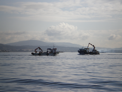 We leave as planned our destination, Combarro, Ria de Pontevedra, the morning is very dull with showers forecast as we make our way around the mussel beds and its surrounding activity.
