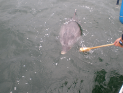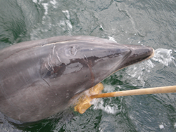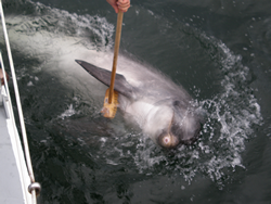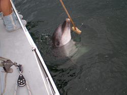 It was almost as if it was crazing for his attention, he was able to call it to the surface by hitting his paddle on the water, it loved being "scratched and stroked" with the oar. It was certainly content to play as long as it received attention. It was great to watch, the two of them played for some time, then the dolphin and Chris headed back to "Dream or Two" (Probably for a nightcap!).