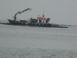 We awoke to a strange site at low water, the beach, or rather the water line in front of us was lined with people chest high in the water, some dressed in regular cloths? They were digging shellfish of some sort, afterwards the shore line was covered in mutilated crabs, starfish and other sea creatures caught up in the exercise - not too sure of it's justification!