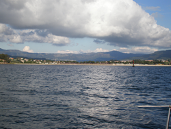 We leave Islas Cies heading a further 6 miles south to Bayona, what should have been a very easy, short trip took us about three hours with a strong head wind and resulting building sea. Once in Bayona we refuel and fill our water tanks before moving into the anchorage. Bayona is a holiday resort, its sheltered waters provide an excellent area for water pleasure sport. It holds two massive marinas and associated water sports clubs.