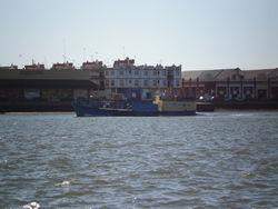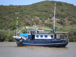 We are anchored off Ayamonte (Spain) on the Spanish side of the river, the entrance (bar) was very shallow but once inside depths are good. The difference in the river banks is significant - let alone the time difference! The Spanish side is one hour forward of the Portuguese river bank. With the exception of Vila Real De Santo Antonio (Portugal) the Portuguese river bank is under developed, Ayamonte (Spain) is heavily developed maintaining a sizable fishing fleet, both towns have a marina. Ferries run continuously across the river, the waters are also busy with the expect "river trip" vessels from both countries.