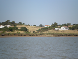 We continue up river for about 8 miles, at times with less than 0.5m below our keel. An interesting challenge searching for the deeper portion of the channel. As we move into "fresh, non-salt water" the vegetation begins to change accordingly on both banks. For the first couple of miles on the Spanish side the developers had moved in the sky line littered with cranes, they soon disappear as the terrain becomes more rugged and isolated. There is no real development as yet on the corresponding Portuguese side of the river