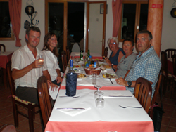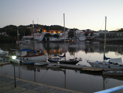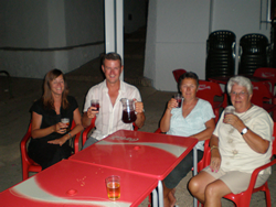 We go ashore after dinner, the town itself is pretty but very quiet, we walk the deserted streets. As darkness falls we decide to visit the only cafe/restaurant on the water front as we return to the dinghy - the Ann, Ben and Mum favour sangria, Lara and I stick with the local beer.