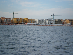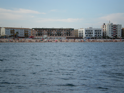 The marina was sizable, a good 25 meters between rows of pontoons at our berth, manoeuvring could not have been easier. The marina complex was a good cycle from the town, the supermarket even further out on the towns out skirts. The town was relatively new, a "local tourist centre", its local beaches, were remarkably clean and busy.