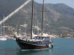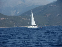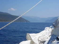 Our engine parts, and spares, we will not be caught again, arrived Wednesday as promised. Yesterday they were fitted and the engine tested - perfect! Our plan was to move across the south of Levkas (the island) up the east coast to Nidri to meet up with Eamon and Beki (Wayward of Cork). We were to make the trip in steps, our first step was to Ormos Rouda, only about 10 miles away, but our aim was to enjoy the good sailing as well as the places we were to visit.
