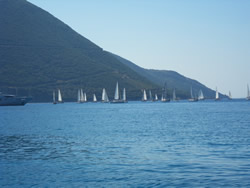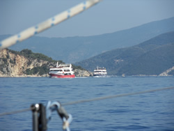 As we make our way between the main land (Levkas) and the island Madhouri, we give way to a ferry using the same channel, turning into Ormos Vliho it appears the whole water world breaks loose. We have every thing one could imagine in front of us as we comes across Nidri, it's challenging keeping clear!