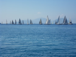 As we make our way across the bay in the dinghy a organised regatta collect, starter guns are sounded and they sail off into the islands.