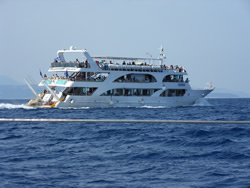 As we rounded Ak Lipso the waters turned quite busy, first a cruise boat, ok, it's holiday season, this week is a Geek national holiday week.