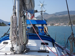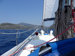 Our destination was an anchorage off Ponti, near Vasilikas, located in a large bay, with easy access even under sail if need be. We believe from there we could order the required spares from England, fit them and move on up to Vliho to meet up with Eamon & Beki (Wayward of Cork), one always has to have a plan!