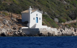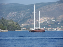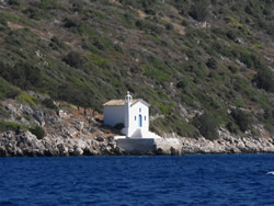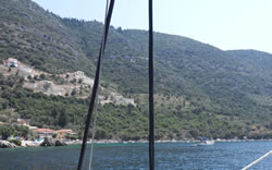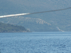 Our trip today was to be less then twenty miles over to the island of Ithaca to the south west of us. We left in perfect weather, other than for sail boats, no wind and made our way down the east coast of Meganisi.