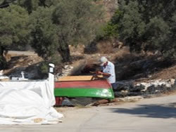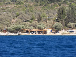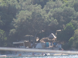 We have decided to stay another day here, it's relatively quiet, the surrounding mountains are beautiful, and of coarse the weather is good. Looking around the bay one area attracts our attention, at first we think it is a water side taverna - no it is a camp site located into one of the hill side ravines.
