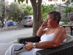 We wander into the only taverna on the front and settle down for an hour or so, I relax and Ann takes care of some stuff!
