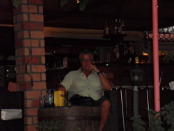 Atheni is a small port, suitable for small open craft only but it's large estuary provides excellant berthing for visiting yachts. There are two quays, the larger more used, especially by charter boats belongs to a Taverna. The second is stone, looked over by the "Yacht Club", which also has a small supermarket - you can either order a drink at the bar, or, buy some thing at the store. The same gent serves you, so obviously, both tasks cannot be carried out simultaneously - still it works well. As we land both the club and store are shut so we make our way up to the taverna and catch a cold drink, or two!