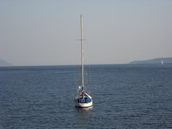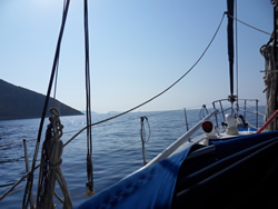 As we approached the anchorage the water was flat, our trusty engine got us in without a problem, our anchor went down, we tidied up and retired for a few hours of needed sleep - at last we were in Greece. It had taken us 96 hours to cover 247 miles, not exactly a great achievement but we had managed our issues well we thought!