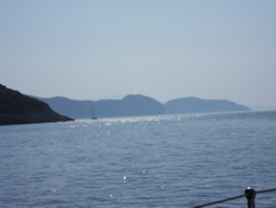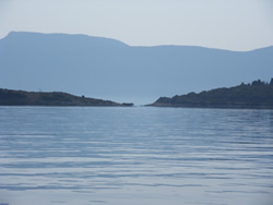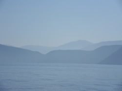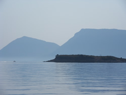 We slip out of our anchorage the dew still on our decks and the morning mist spoiling the dramatic, mountainous views. The seasons are changing, the temperatures fall a lot further now at night creating the dew. The days are still hot, but the morning mist has increased also, still, nearly September? I will miss the consistent weather, Ann, believes it to be too hot and is looking forward to the winter, when it comes she will be saying some thing entirely different I am sure.
