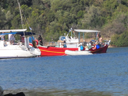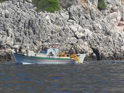 When back on board we were approached by a fishing boat, mother and son . We were asked if we wanted fish, we bough a young tuna for €10, we cooked it for the dinner the next day, eating it nearly killed us, but we managed. We watched the following day as they returned, we refused and watched them make their way around the other boats.