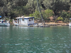 We see one vessel, tied to a quay, it had obviously sunk in time and pulled the quay down with it? It is a shame but no one seems to care, it has effectively turned a lovely bay into a "scarp yard for boats".