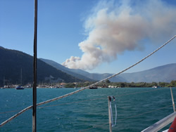 As night approaches we have to get prepared as Beki and Eamon are coming over for a barbecue, it, unfortunately co-en sides with a hillside fire. During the barbecue lighting process we are constantly bombarded by the noise of both sirens from the island's fire engines and the noise of the engines from the sea planes picking up and dumping sea water onto the flames. It was some what of a disaster for both parties, obviously significant damage to the island and uncooked food for for us as the barbecue went out, more so due to neglect - still on went the oven.