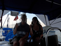 We head back to Sailaway and meet up with Beki & Eamon that evening, Beki returns first so we have a couple of drinks on Sailaway and catch up with the gossip, Eamon returns later and we continue the evening on Wayward.