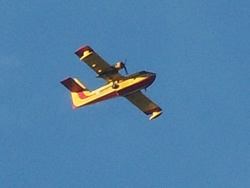 We awake in the morning to the sound of the aircraft still discharging sea water, every thing has a covering of ash - not from our barbecue!