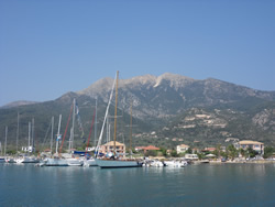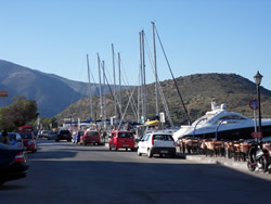 The town is obviously heavily dependant on tourism, as are all the towns in Greece, the large harbour/bay has numerous walls for visiting vessels to tie too - we are surprised by the pleasure traffic, a continuous change over of berths? The quays are lined with tavernas, spilling out over the roadside directly onto the waterside, there are whole sections of the quay that cannot be used as berths as one cannot get ashore due to the mass of tables lining the waters edge.