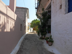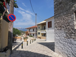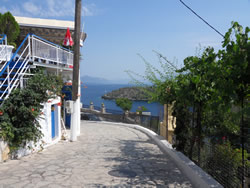 The village of Spartakhori is high above the small port reached by a small winding roadway up the hillside occasionally complemented with steep stairways. The view is spectacular as one climbs, Sailaway now sits peacefully far below us.