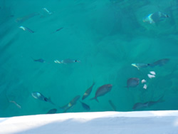 But seriously, the water is so blue (for Mums benefit) and clear, I feed the fish yesterdays bread. We had archived another milestone in our quest, dropped anchor and tied ashore - is there nothing we cannot do?
