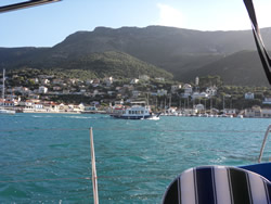 We identify the isle of Katzurbo, putting it to our starboard (right) side we enter the bay and Vathi is clearly visible.