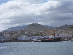 The island has a quaint attraction, nothing is locked, everything is relaxed, we come to one point of the coast line, offering excellant protection from the ongoing gales, a small freighter anchors, surrounded by working fishing boats. We make our way slowly around to the east of the island to "Cala Levante" it's cove very picturesque dominating the back drop. We decide to head down to check out the settlement, the roads are good so no issue there.