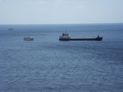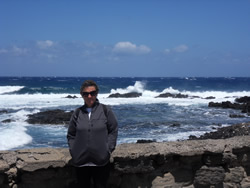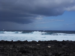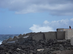 Sailaway is continuously sprayed with salt water as it comes over the top of the wall, the spray carries a fine black sand obviously derived from the volcanic rock. One can imagine how she looks, and of coarse without fresh water we cannot wash her down properly. Ann has to make do with washing her down with sea water? We have no facilities at all where we are, but, one cannot really complain as our berth is free and we are quite "self sufficient!"