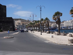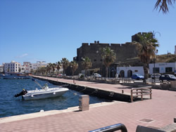 The "Castle of Pantelleria" dominates the town, it is said to date back to the 12th century with the usual modifications over time. The harbour area which the town fronts on to is called "Porto Vecchio", in the past a wall has collapsed and dominates the water area, many small boat moorings are laid, but yet unused - too early yet? A local boat yard is full on trip boats, ready to be launched for the tourists. The old harbour offers little protect from the north, three sail boats, two English chose to tie up along side the north pier - we have a look, the swell they are subjected too is quite violent. We definitely chose the correct are to berth.