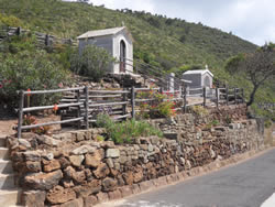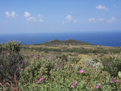 The soil is clearly fertile, feeding the crops, anything from vegetables, to vines, but also the wild plants - a wonderful growth of colour is every where. The roads are of extremely poor quality in many places. We come across many small settlements of the main road serviced with at times a "track" made of rock and small stones. The lane shown above (centre photograph) serviced about ten houses at "Punta Di Nica" and a sign posted "beach", obviously mainly of black rock, not the sand as we would know it.