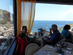 It is a small coastal settlement, a dive shop (purchase, or rental of equipment) and a cafe. We walk around, then deciding to have a coffee we go into the cafe, the proprietor speaks quite good English and seems to enjoy the practice. He has been to London several times, his arm is in a sling, he explains he came off a scooter and has broken his shoulder and needs an operation? He explains that he is awaiting the opportunity to fly to Sicily for the operation as they cannot do it on the island? This for us brings you down to early with a bang - emergencies can be air lifted by helicopter, his shoulder is not an emergency. He still manages to serve our coffee - just as most would?