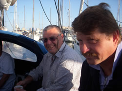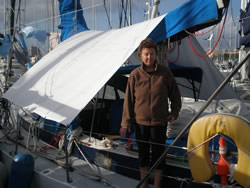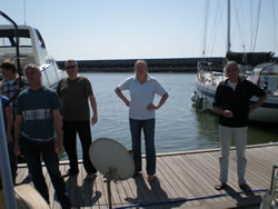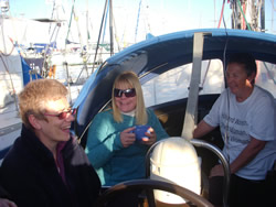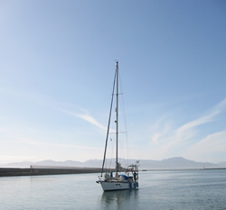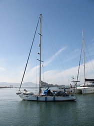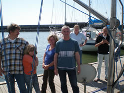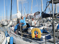 We motored for some time, looking for local wind a little further into the bay, a lazy day ahead - the first glass of wine was poured as we left the harbour. We spent about three hours out in the bay, our speed restricted by the light winds, but all points of sail relative to the wind was tried. All works well, we have moved into the 21st Century, investing in a Chart Plotter (electronic charts, are now cheaper than paper!) - I still prefer my paper charts and pencil although the system clearly has it's advantages. All making our next trip to Tunisia a "piece of cake" as we say! We sail "goose winged" back to the harbour entrance, drop our sails and prepare to make the dangerous manoeuvre back into our berth. We had arranged to call Riens & Ineke (Syzeezwaluw, or Sea Swallow to us brit's!) on the VHF to warn, I mean advise them of our intended return - Riens & Ineke were our "ground crew".