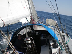As we motored on the wind began to swing to the south east and lift some what, off went the engine, we were now fully committed to the journey, no going back, what ever winds were awaiting us, we would manage. As darkness fell we again reflected over our time in Cagliari, the wind would gradually continue to move to the west over night, constant adjustment of our canvas kept our speed up, and of coarse our engine off!
