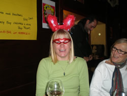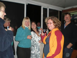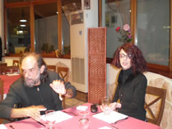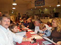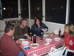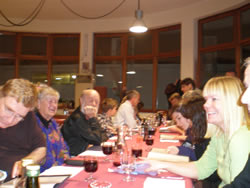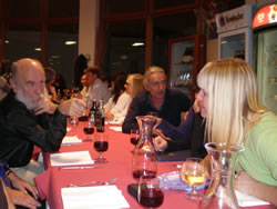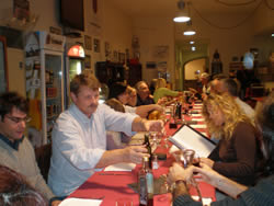 The restruant is ready for us, we are all seated on one long table. As one would expect the evening begins in a fairly conservative manner, things "loosen up" as the wine flows.