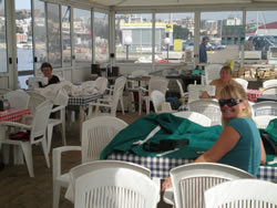 As dawn broke, we were ready, good and fresh, we had left our leaving party early to ensure a good night sleep as we had forecast F5 north westerlies which would ensure us a brisk passage to Tunisia. Many of our friends had joked about coming to see us off at 0700 hours - "ensuring that we would leave". I check the 0600 hour forecast, and guess what, all change to the previous, midnight's predictions. The F5 had increased to F6, and over night increasing to a F7 (a yachtsman's gale). As I confirmed to Ann we were now not leaving, we heard Julia (Wild Oats) calling us from the pontoon, complete with her own coffee, people kept on coming, one could only describe it as breakfast on Sailaway. Poor Riens & Ineke (Sea Swallow) were unable to find a seat on board and returned to their own vessel!