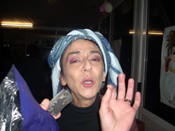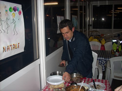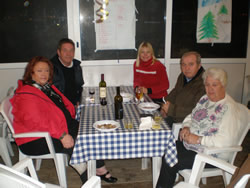 In true tradition, here at Marina del Sole, we decide to celebrate the ancient tradition in true style. It begins as quite an informal gathering, a notice of the intended celebration is place in the club house window. It's written in Italian on remnants of a cardboard box! We arrive with Mum early in the evening to find out that the food was being supplied by the locals, all traditional of coarse. The event begins to gather pace, little had been know about it within the live aboard's - I assume we were invited? Those Italian lessons had paid off I guess.