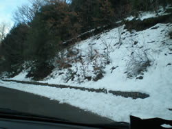 The higher we go the more snow, how ever as the narrow, winding roads follow the profile of the hills we are constantly climbing and descending, the back drop changing continuously.