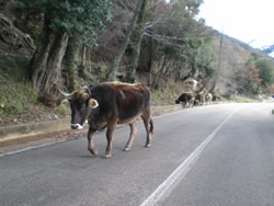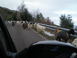 We decide to hire a car and take Mum north into the centre of the island, our destination is the town of Belvi, just north of the province of Cagliari. The area reflects the ancient characteristics of the island with rugged mountains, shepard's, trails, with villages perched high over steep, mountainous valleys. The area is known as Barbagia, developed from the latin word "Barbaria" was used by the Romans to describe these inaccessible regions of the interior, inhabited by "barbarians", not sharing Roman believes. This central region resisted invasion for centuries, preserving it's nuraghic regional rites. Chestnut forests dominate the hillsides.