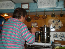 Ann's concentration is intense, she utilises her new, recently acquired, dual pressure, pressure cooker. Ann uses a steamer for the vegetables. The meal was lovely, Ann always makes too much, it always totally disappears. There is no wonder we are watching our weight, grow that is? We keep saying "we will work it off, once we start moving!"