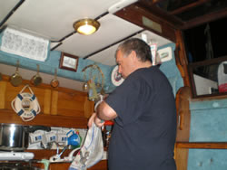 Winter is a difficult time on board for many, socialising, plays a major point - if one is not careful one can easily "drink the time away!" I am luck to a certain extent, there is always some thing to fix, modify or install on board. Ann has taken to cooking, on board we have food products, and utensils on board that when we "lived a normal life" was never owned, let alone used! Tonight, it is "Rich Rabbit Casserole", rabbit, obviously, cooked in cider, prunes and apple. I had just returned from the UK, I had been under strict orders to bring back with me the cider as the product is not available here. I had originally purchased four cans of Scrumpy Jack - unfortunately, only two made the trip!