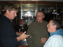 Any activity on the pontoons usually attracts someone's attention, it is a beautiful day why not? Reins (Sea Swallow) and Gavin (Blue Elephant) join the group, not too arduous for myself as Reins brings his own coffee!